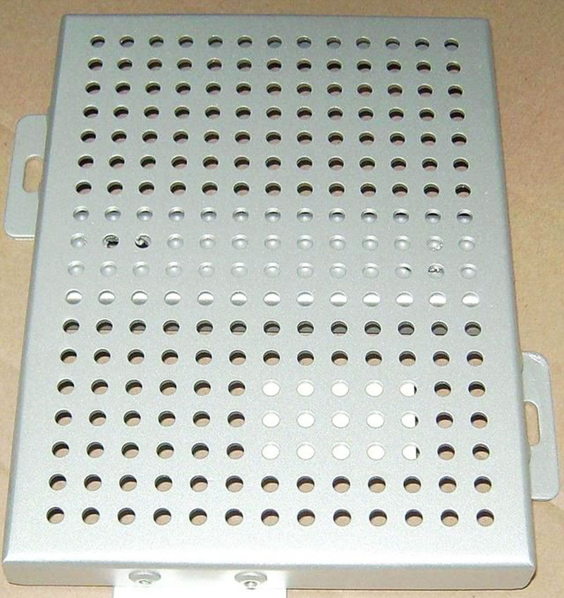 沖孔板是由各種材質的鋼板沖剪拉伸或沖孔而成。沖孔板一般采用優質1100、3003、5005單層鋁合金板為基材。表面涂層分為氟碳噴涂,粉末噴涂,聚酯漆噴涂。鋁板表面涂層性質嚴格按客戶要求,顏色可由公司負責提供標準色卡供客戶選擇。沖孔鋁單板產品厚度主流的有1.5mm、2.0mm、2.5mm、3.0mm、4.0mm等各種規格,成型鋁單板尺寸可達1500x4000mm。